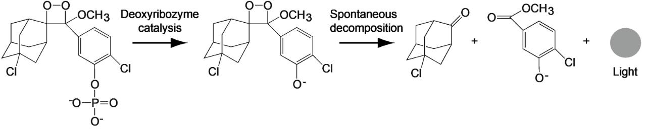 堿性磷酸酶對CDP-Star的酶促去磷酸化導致形成穩定的二氧乙烷酚醛陰離子,在緩沖溶液中分解并在466nm發光。